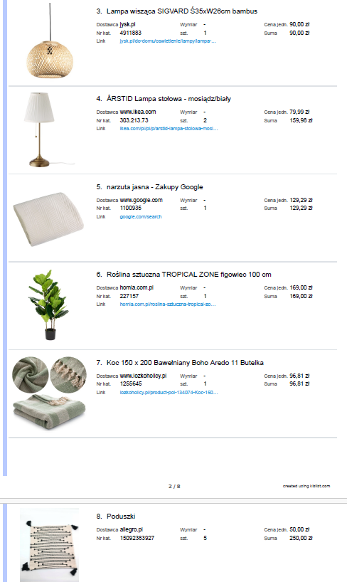 Projekt zakupowy czyli pełna lista produktów niezbędnych do home stagingu Twojej nieruchomości (zarówno mebli jak i dodatków) dobrana pod grupę docelową.